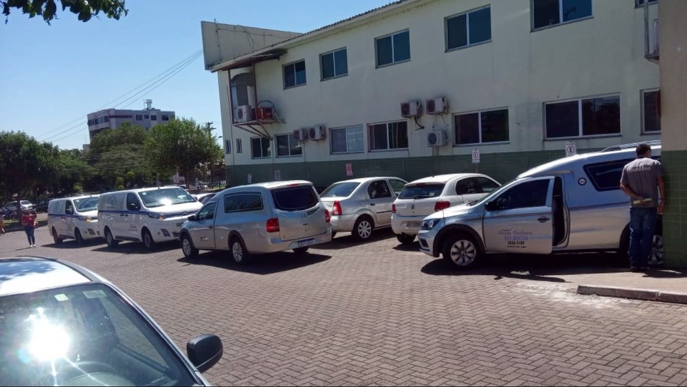 Carros funerários precisaram formar uma fila para fazer a retirada de corpos de pessoas que morreram no Hospital Municipal de Foz do Iguaçu, na região oeste do Paraná. O registro foi feito na tarde de quarta-feira (10).