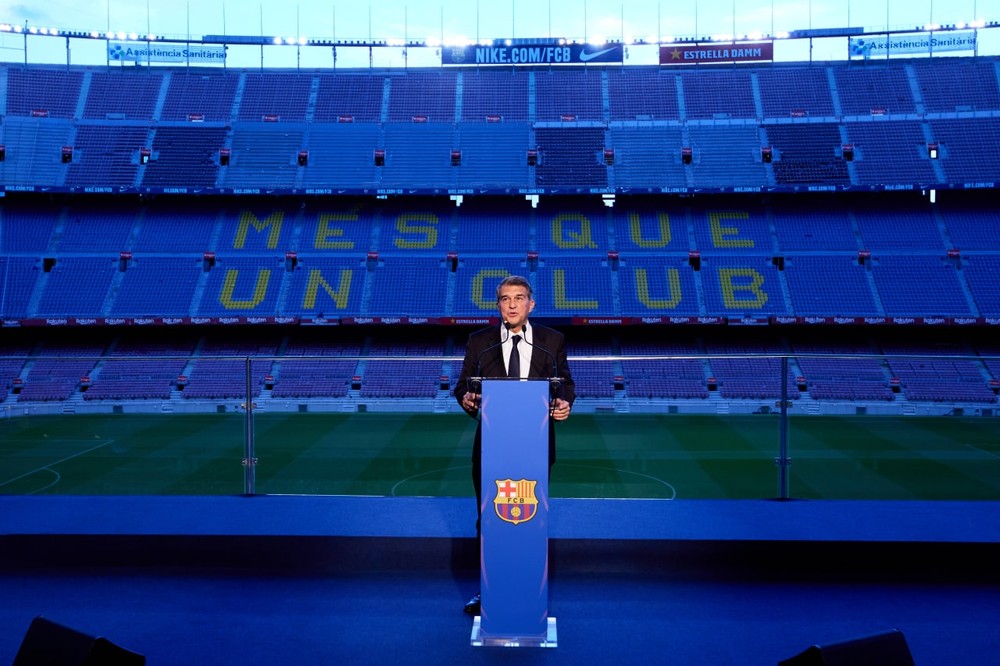 Laporta foi presidente do clube entre 2003 e 2010, período no qual Messi subiu para os profissionais e fez história. Desde então, cultivou uma boa relação com o argentino. Por isso, tomou a liberdade de fazer pressão sobre o astro, que logo foi buscado pelas câmeras da Barça TV durante o discurso.