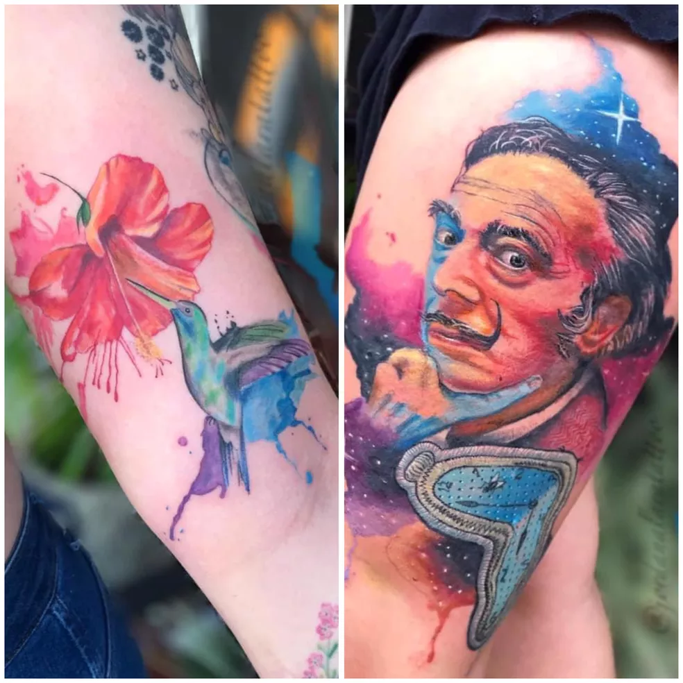 O trabalho de Jordana Lara, 33 anos, é uma explosão de cores. Natural de Goiânia, ela vive em Grenoble, na França, há pouco mais de dois anos e trabalha como tatuadora há oito. Ela conta que está apreensiva com a durabilidade das novas tintas, uma vez que ainda não há como prever qual será o resultado a longo prazo da nova formulação.