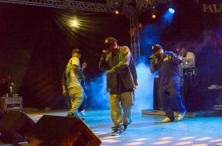 O grupo Falange da Rima, que já participou de outras duas edições do Som da Concha, encerrou a noite com um show carregado de homenagens. “É uma honra terminar o ano aqui, representando o rap e homenageando artistas como Secos e Molhados, Délio e Delinha, e Bêbados Habilidosos. O rap, que antes não tinha espaço, agora é reconhecido graças a projetos como este”, afirmou DJ Magão.