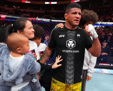 Gilbert Durinho se reúne com sua família após anunciar aposentadoria — Foto: Chris Unger/Zuffa LLC